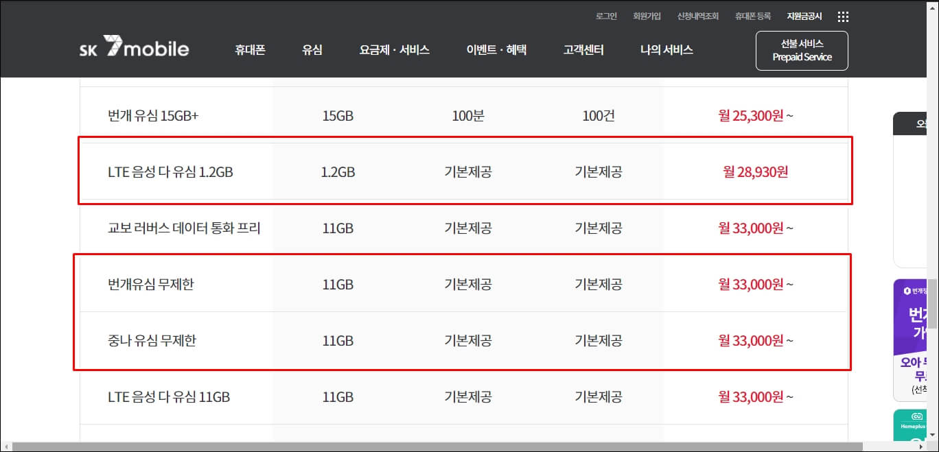 3. SK 7 모바일 무제한 요금제 추천