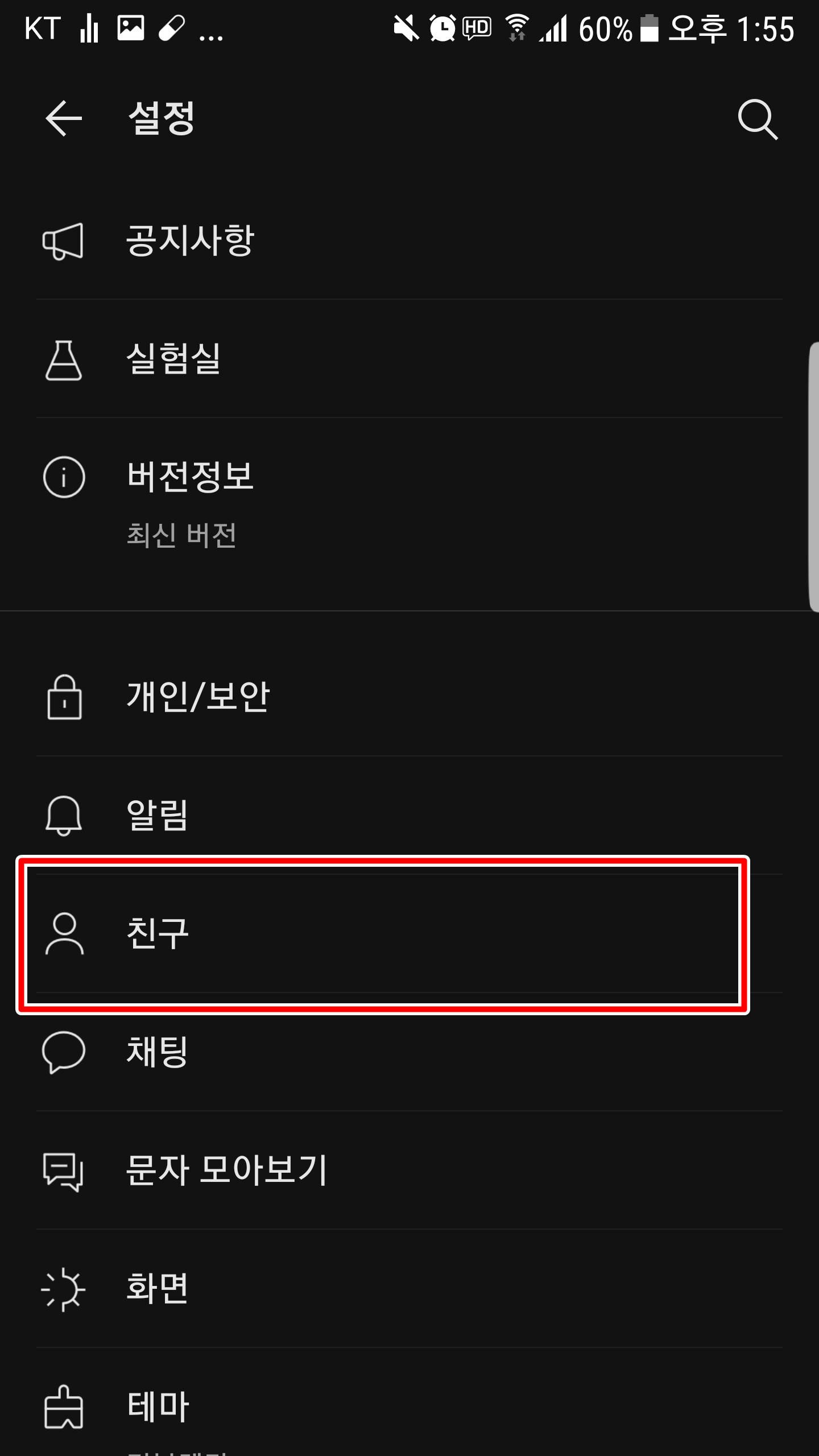 우측 아래 메뉴를 눌러주신 다음 위에 톱니바퀴 메뉴를 눌러주시고 친구 탭에 접속해봅니다.