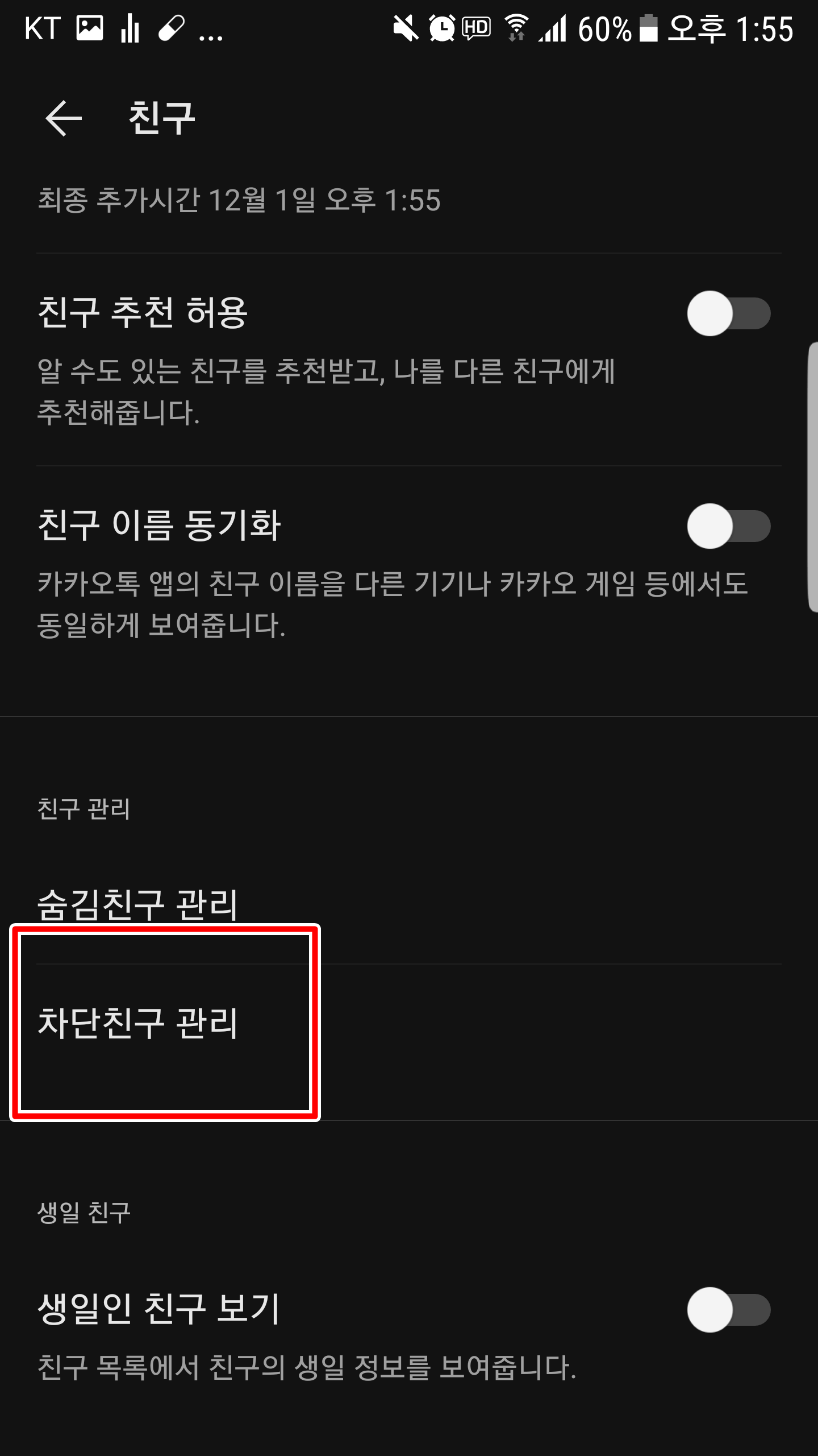추천 친구 목록에 차단했던 친구가 추천 친구에 있으면 상대방이 나도 모르게 나를 카톡 친구로 추가해놓은 것입니다. 하지만 상대방이 [친구 추천 천용]을 비활성화로 해놨다면 추천 친구에는 뜨지 않습니다. 친구 추천에 뜨지 않는다고 해서 너무 실망하실 필요는 없으실 것 같네요!