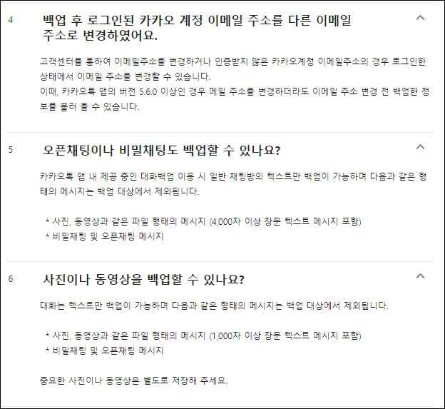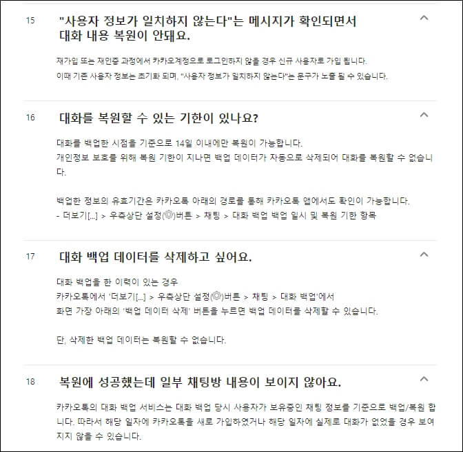 3. 카카오톡 고객센터 백업/복구 질문과 답변