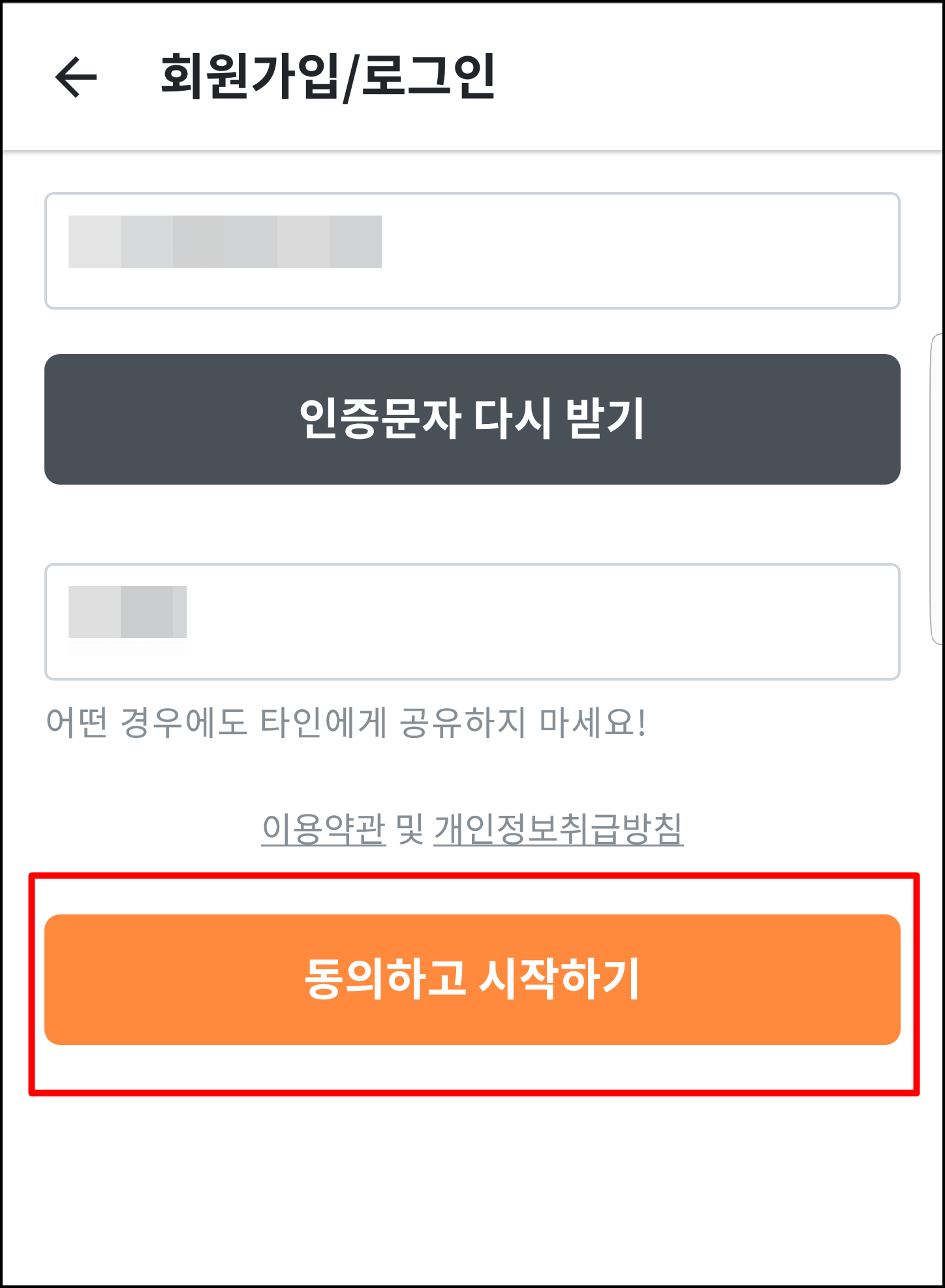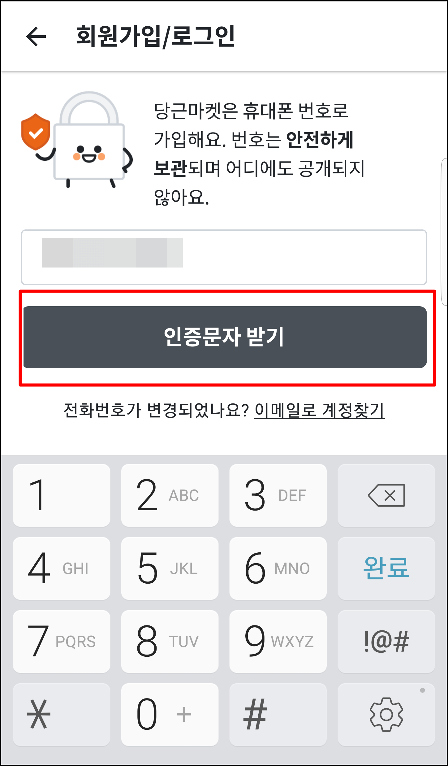 스마트폰에 도착한 인증문자를 번호를 확인해보세요. 인증문자는 숫자 4자리입니다. 4자리 숫자를 입력하시고 [동의하고 시작하기]를 누르시면 회원가입 절차가 끝이 납니다. 그럼 집에 있는 중고 물품을 한번 올려볼까요??
