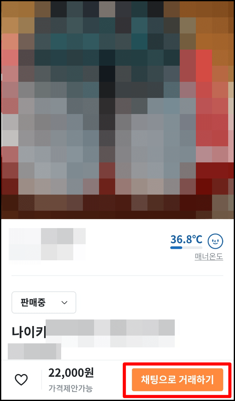 그래서 마음에 드는 물품이 있다면 우측 하단에 [채팅으로 거래하기]를 누르셔서 판매자와 구매자 사이에 거래 합의를 보시면 됩니다.