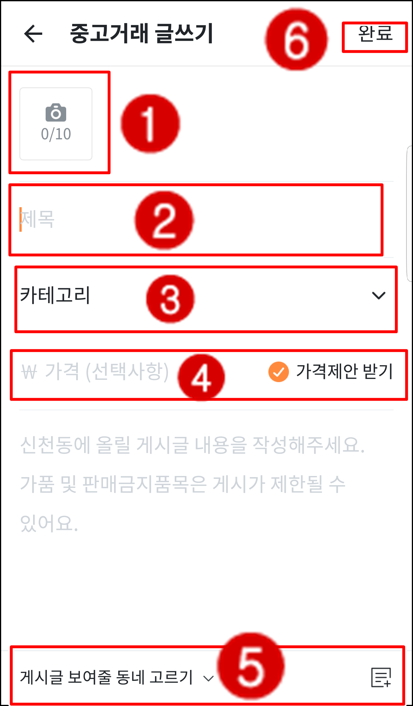 물건을 업로드하는 과정은 그리 어렵지 않습니다. 업로드 과정은 총 5단계로 나뉘는데요.