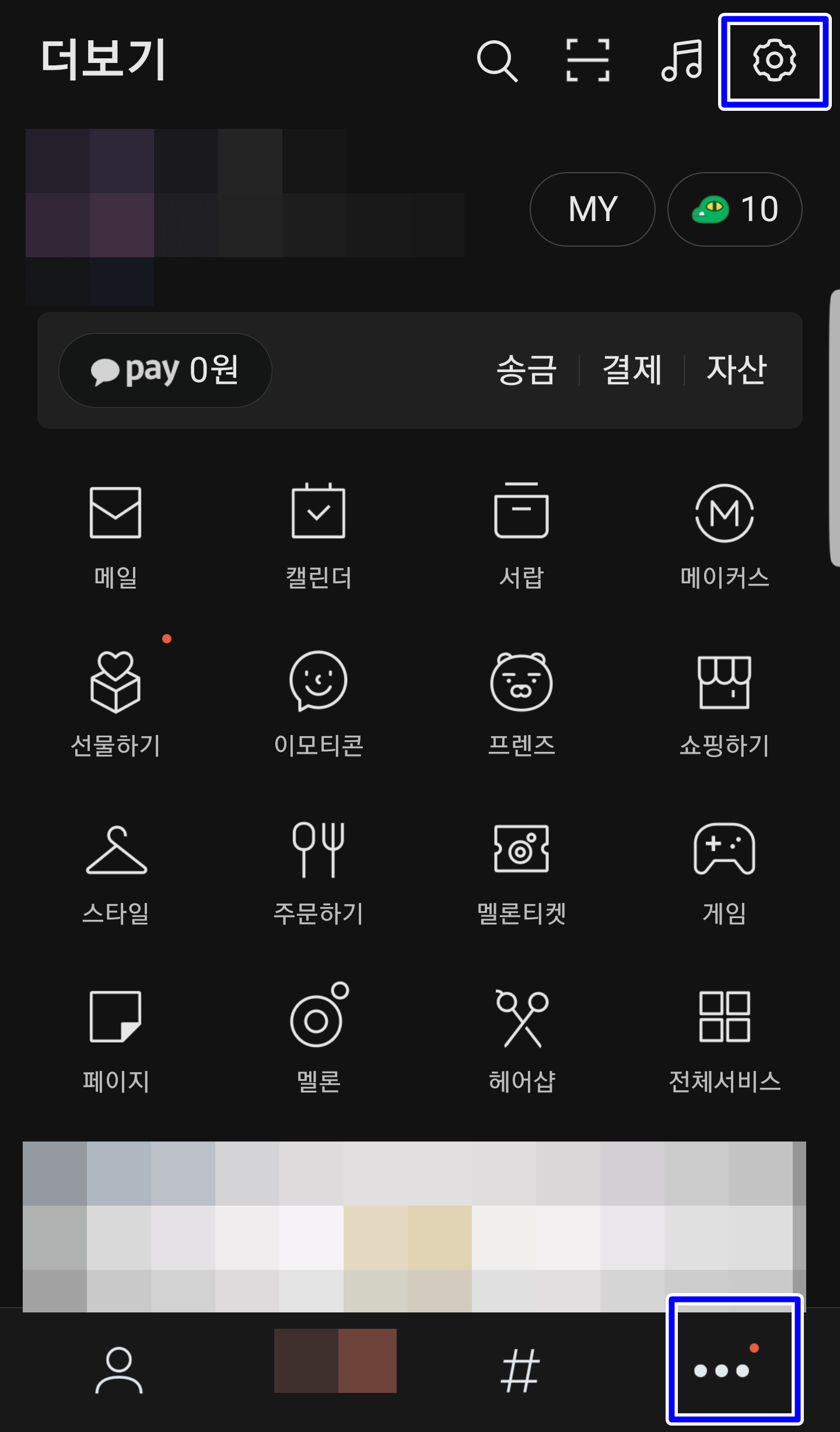 우측 아래 메뉴를 누르신 후에 상단에 톱니바퀴를 누르시고 친구 탭으로 접속해봅니다.