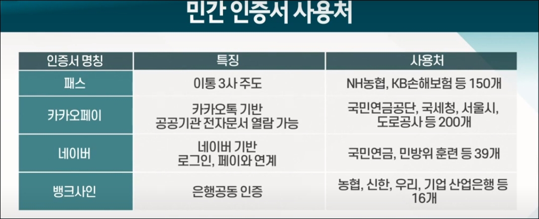 이로 인해서 향후 공공기관, 금융기업(은행사, 보험사) 등과 제휴를 통해 더 편리하고 다양한 서비스를 제공한다는 것이 인증서 업체들의 목표입니다. 물론 각각의 업체들마다 제휴하고 있는 기관들이 조금씩 차이는 있습니다. 어떤 기업이 어떤 기관들과 제휴를 맺고 있는지 간단하게 살펴보겠습니다.