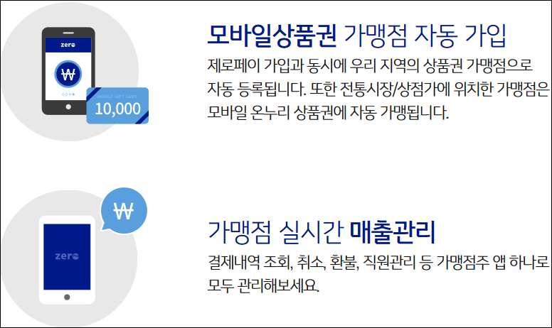 제로 페이에 가입을 하면 자동으로 각 지역 상품권 가맹점으로 자동 가입이 이루어지기 때문에 소비자들의 편리함을 제공해드릴 수 있습니다.