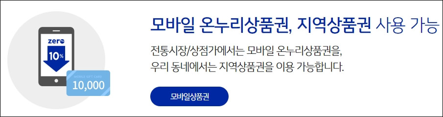 모바일에서 각 지방에서 발행하는 지역상품권, 온누리상품권 등을 사용하실 수 있습니다.
