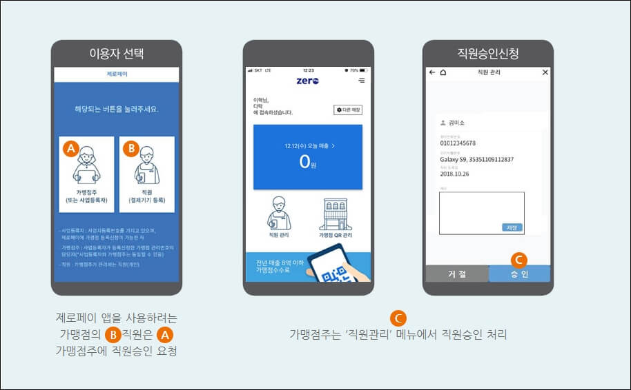 직원들을 결제기기에 등록을 하시려면 직원 승인 요청을 따로 진행해 주시면 되겠습니다.