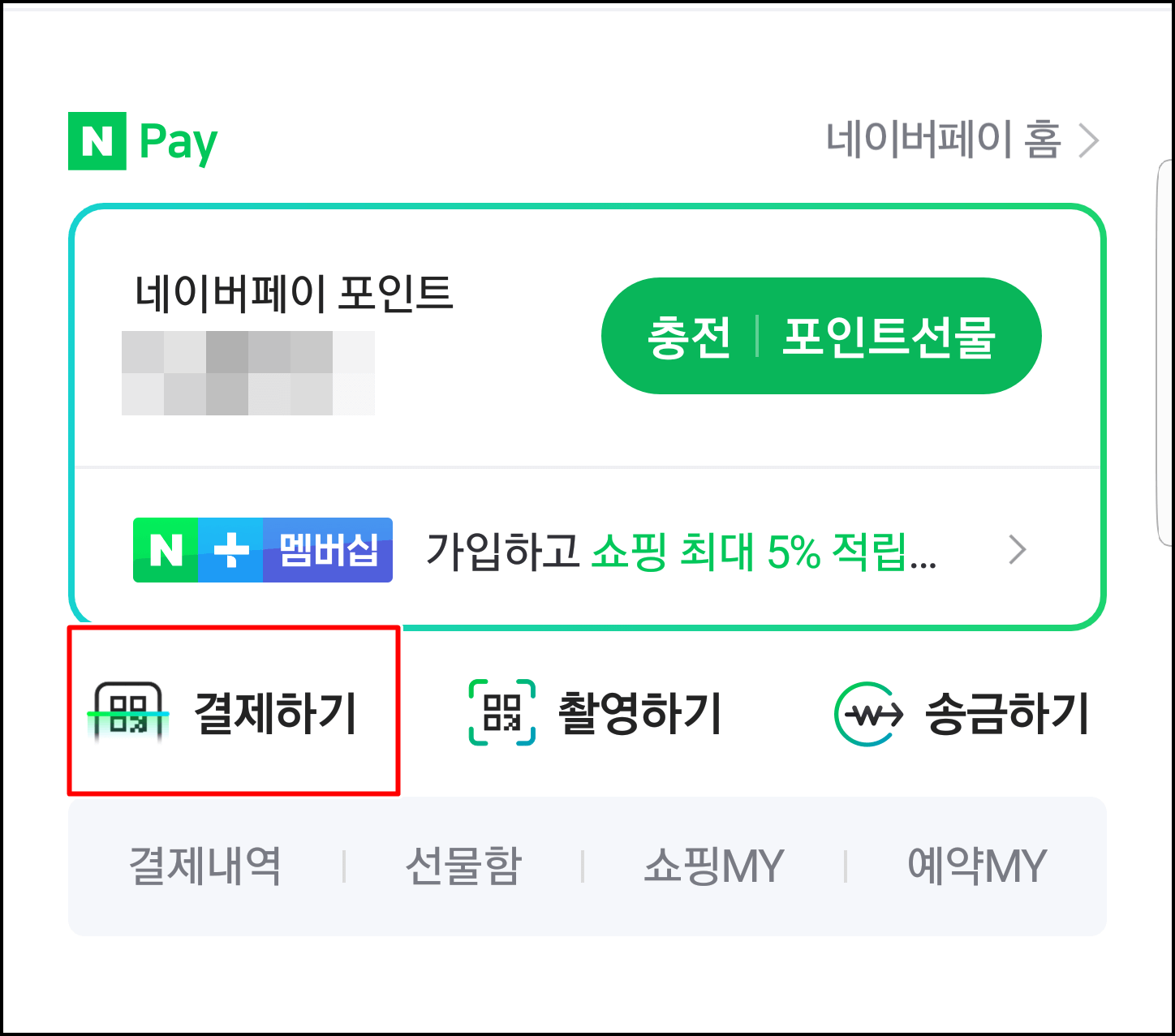 결제 방법은 결제하기와 촬영하기가 있는데요.. 결제하기는 가맹점 POS기에 달려있는 스캐너가 직접 스캔하는 것이고 촬영하는 것은 가맹점 QR코드를 스마트폰 카메라를 사용하여 직접 찍는 것입니다. 보통은 결제하기가 사용하기 편리합니다.