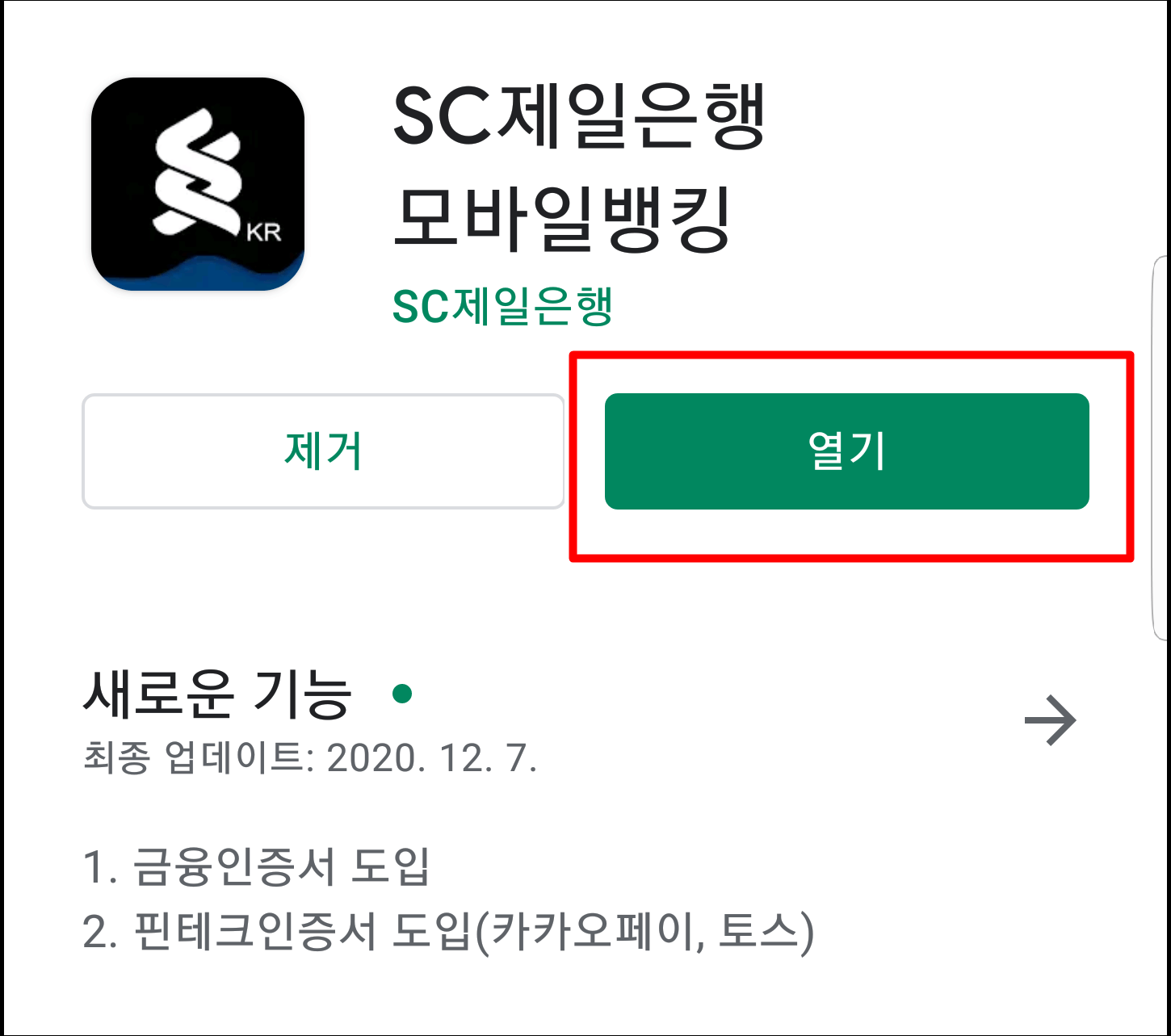 우선 구글 플레이 스토어에 접속하셔서 SC제일은행 어플을 설치해 주시고 실행하 신다음 본인인증 절차를 밟습니다.