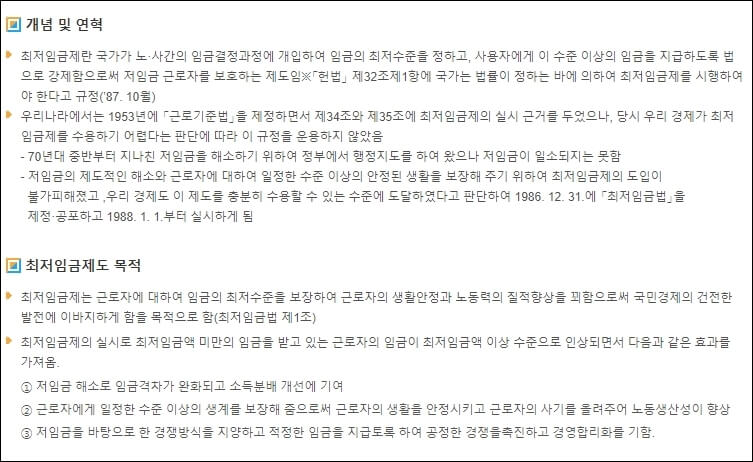월급을 계산하기 전에 최저임금위원회에서 명시하고 있는 최저임금의 개념 및 연혁, 목적 등을 한 번씩 읽어보시고 넘어가시길 바랍니다. 아무래도 정보를 습득하게 되면 분명히 도움이 될 것입니다.