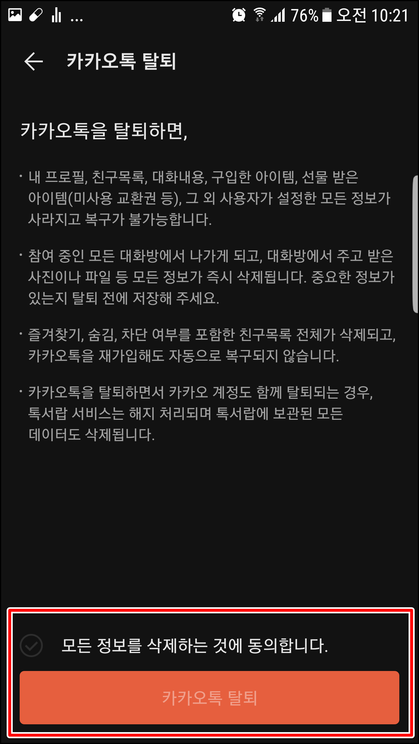 카카오톡 탈퇴를 누르시면 탈퇴가 진행됩니다.