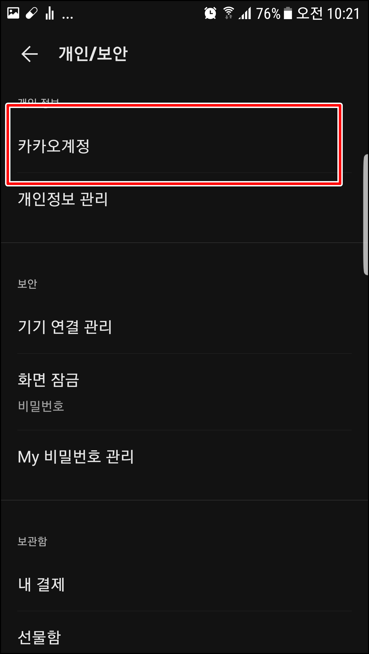 카카오 계정을 눌러봅니다.