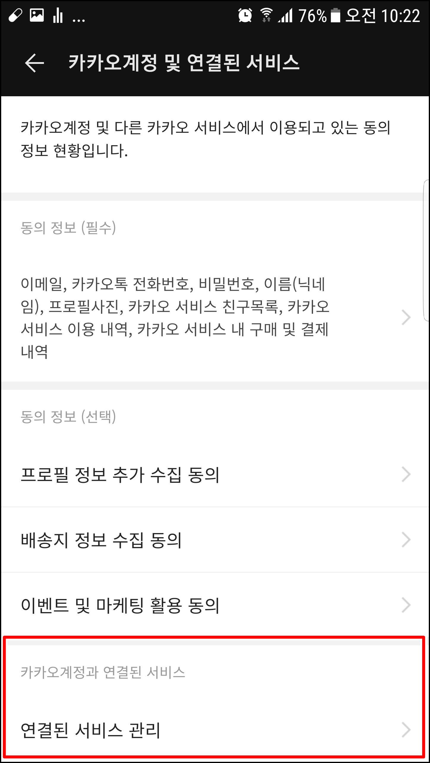 카카오 계정과 연결된 서비스