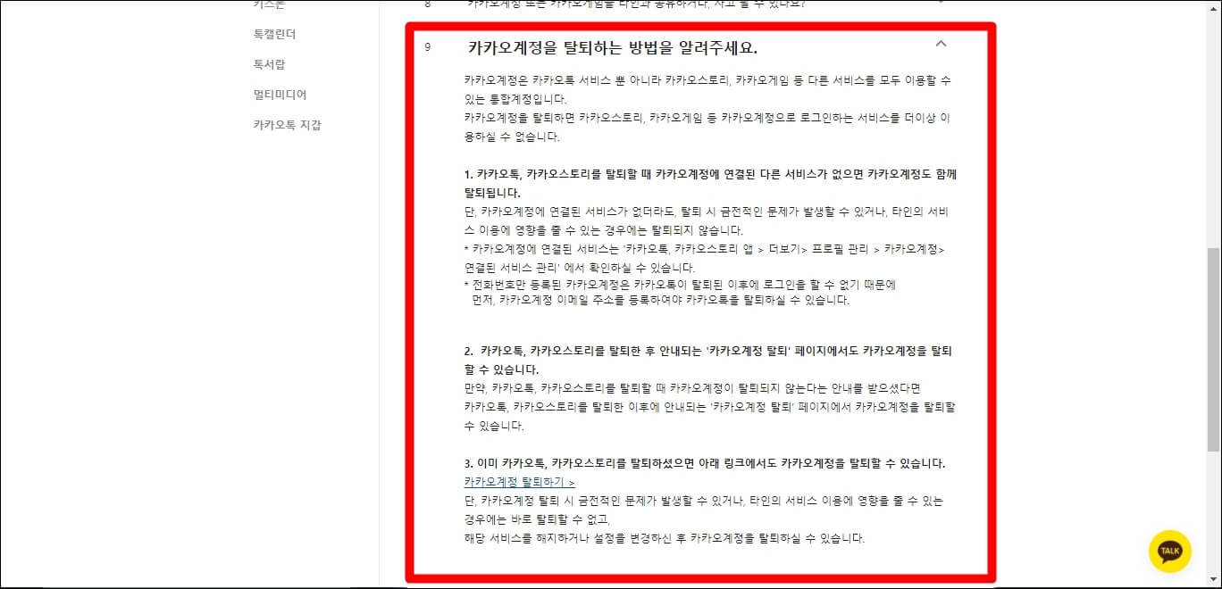 1. 카카오톡을 탈퇴할 때 카카오 계정에 연결된 서비스가 없으면 계정도 자동 탈퇴