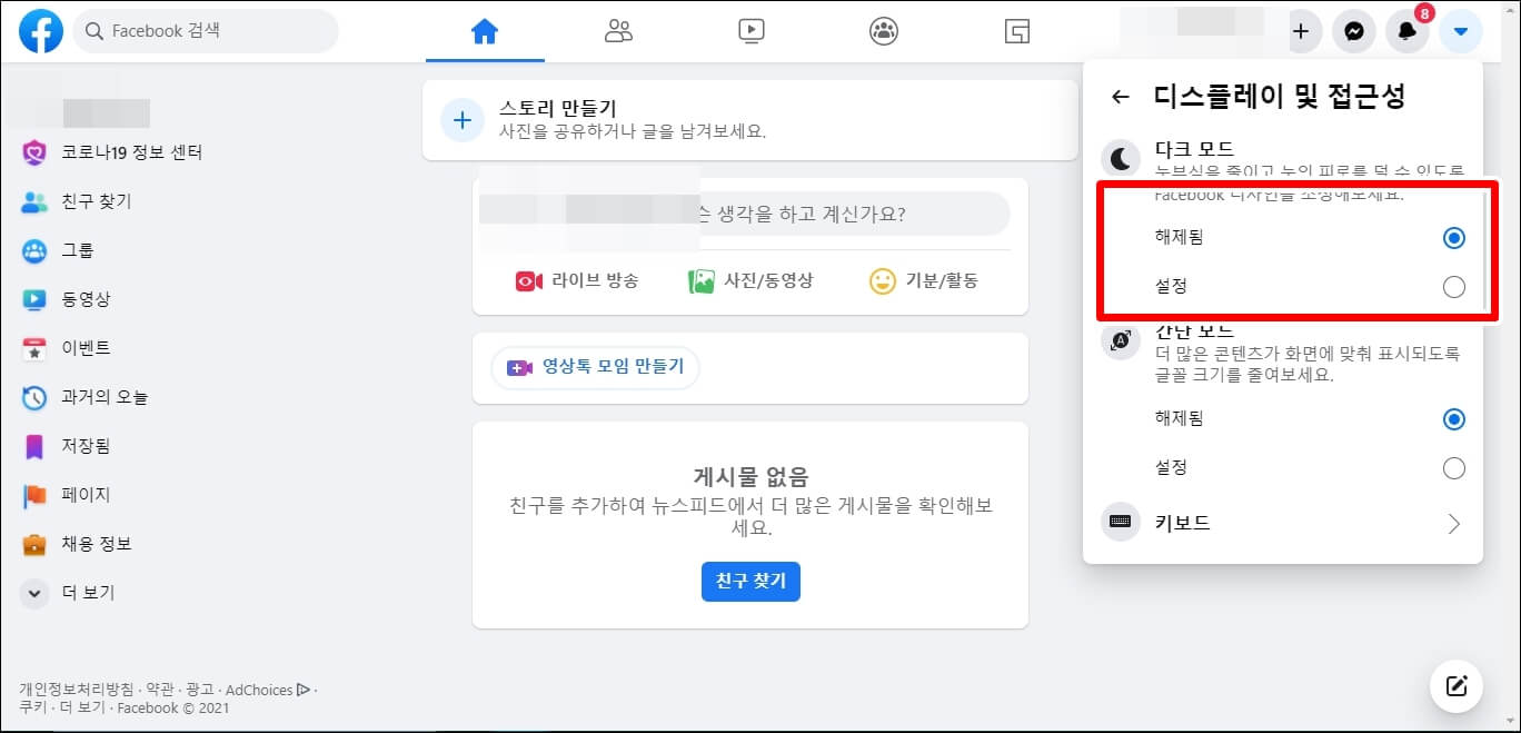 1. 페이스북 PC버전 다크 모드