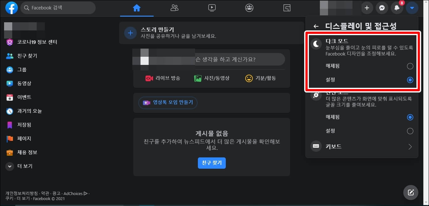 1. 페이스북 PC버전 다크 모드