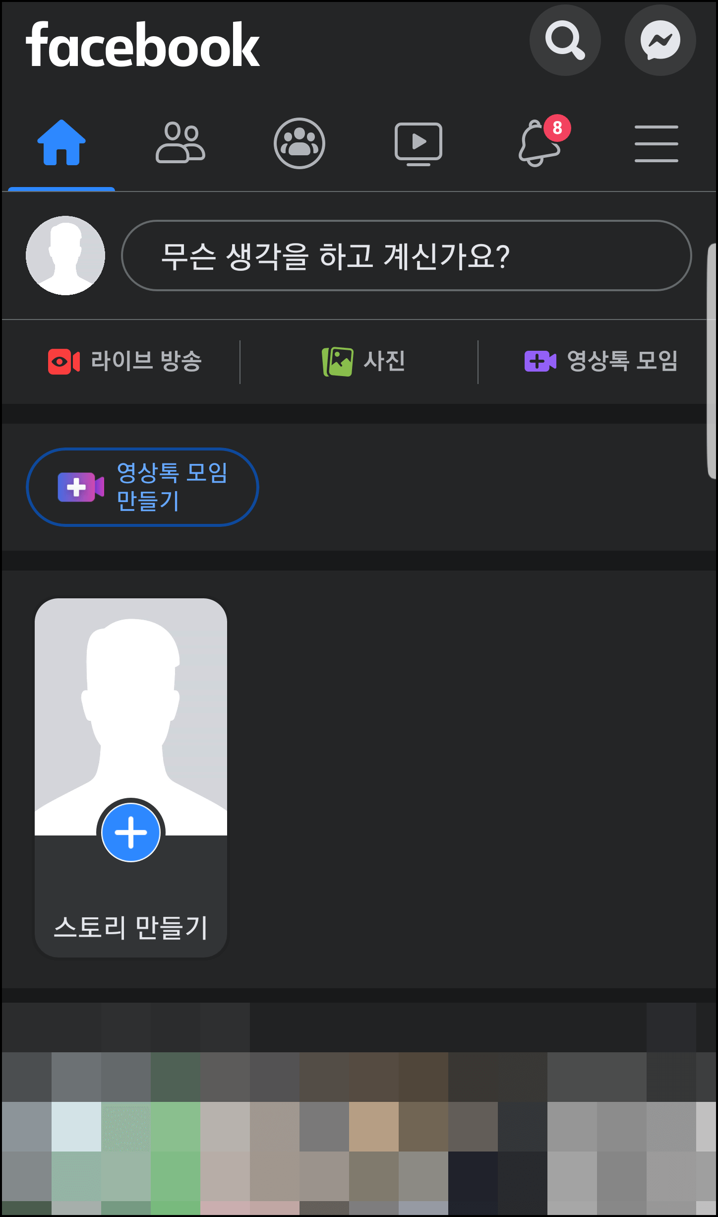 다크 모드 설정을 끝내고 페이스북 모바일 버전에 접속했습니다. 보시다시피 검은색 바탕의 화면으로 전환이 되어 눈에 부담 없이 sns를 하실 수 있습니다.