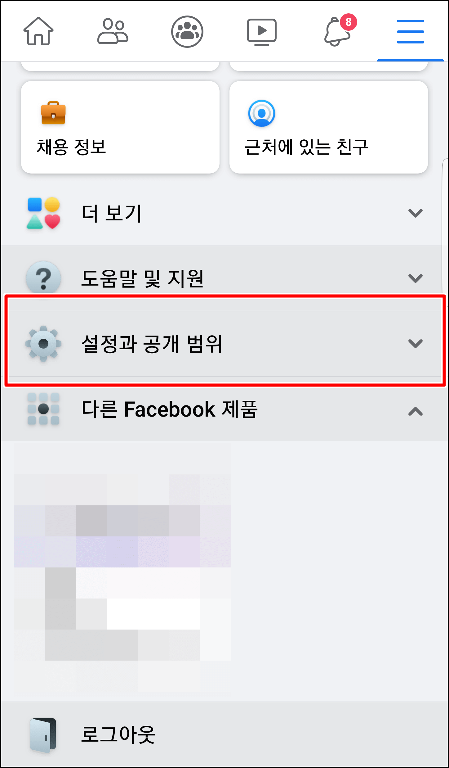 다음으로 [설정과 공개 범위]를 눌러봅니다.