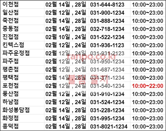 보령점, 서산점, 아산점, 제천점, 천안 서북점
