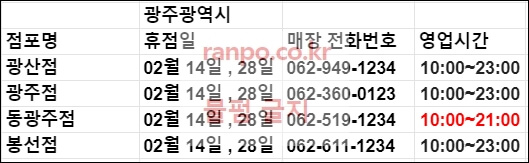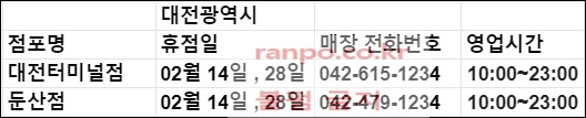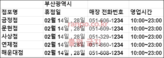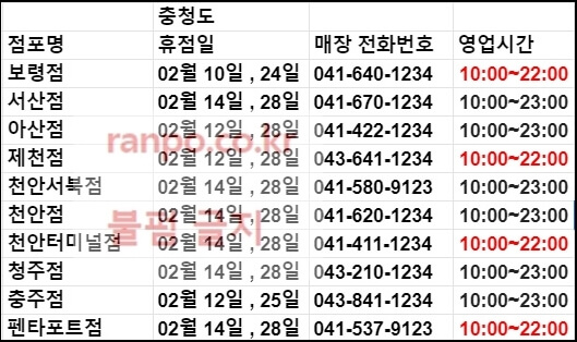 보령점, 서산점, 아산점, 제천점, 천안 서북점