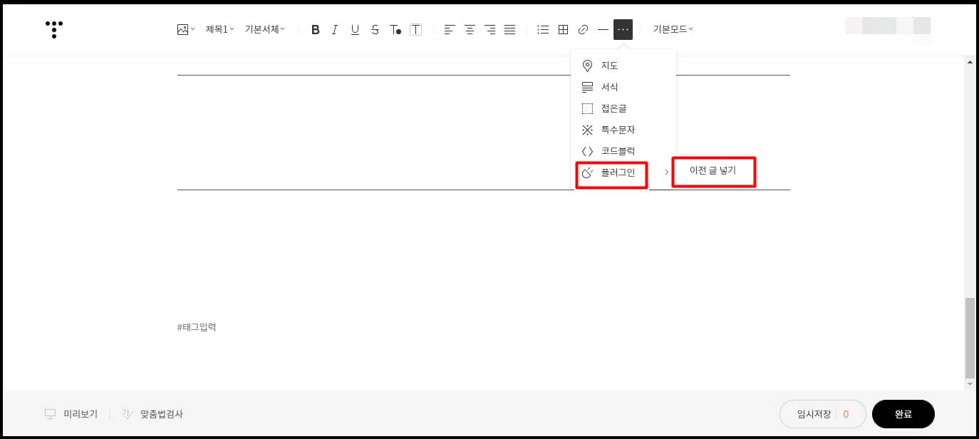 방법을 모두 알아봤으니 이제는 어떻게 하면 노출시키는지에 대해서 알아보도록 하겠습니다. 아까도 말씀드렸다시피 키워드 단가는 높은데 월간 검색량이 10~100이 나온다면 구글에서 노출될 확률은 거의 없다고 봐도 됩니다. 그래서 포스팅을 작성하실 때 '플러그인' 기능 중에서 '이전 글 넣기'를 클릭하여 추천 포스팅란을 따로 만들어주시면 됩니다.