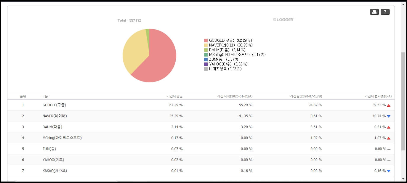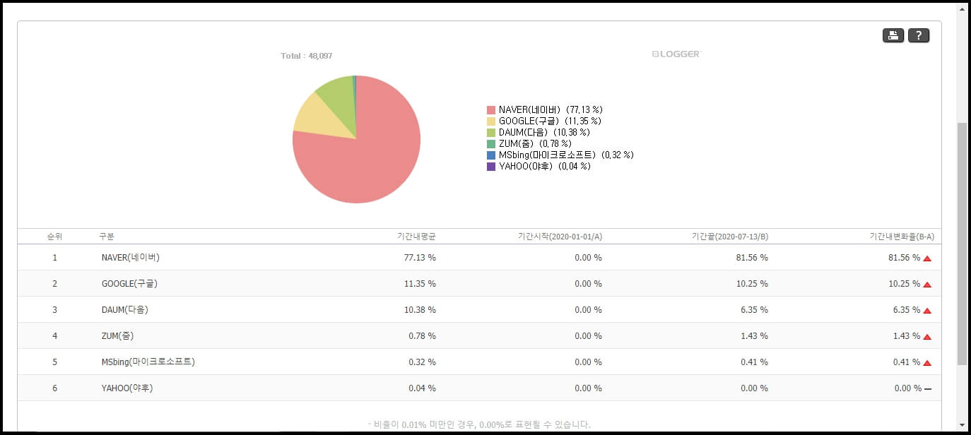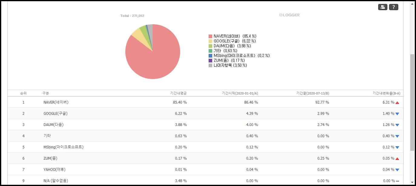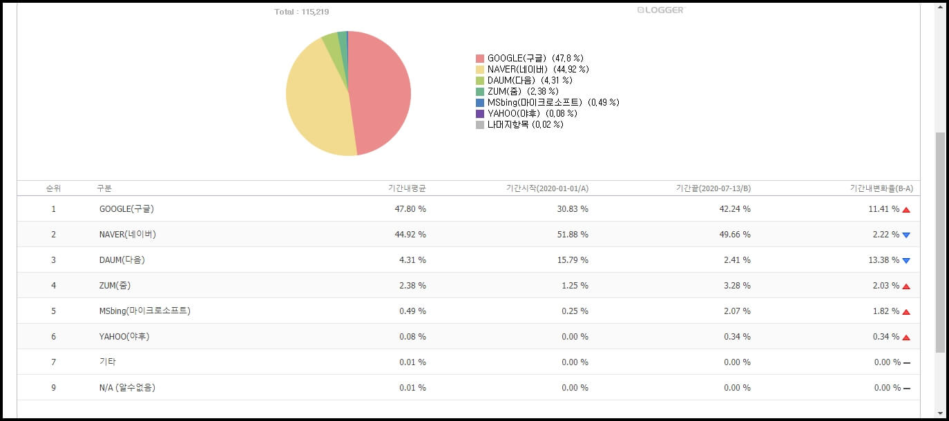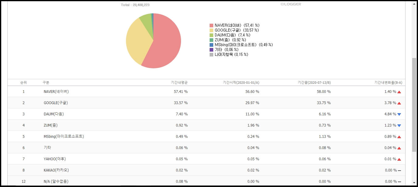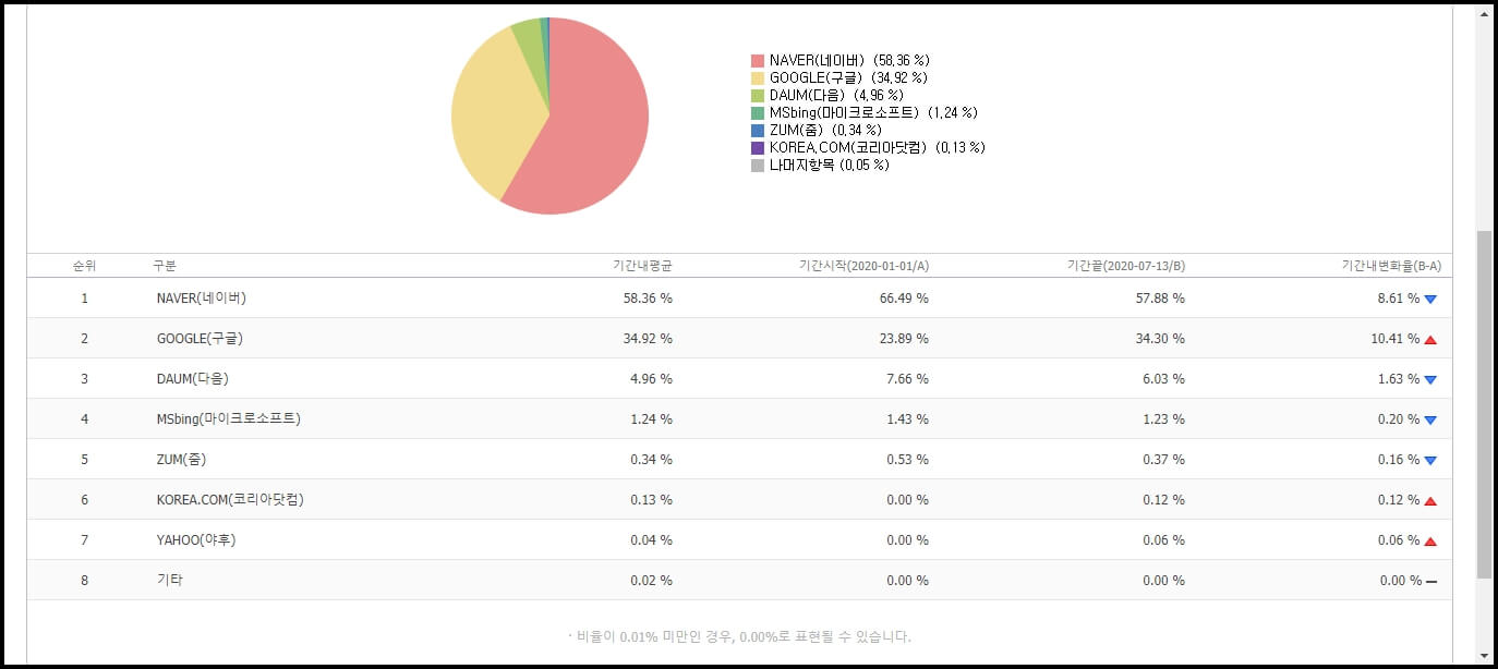 2020년 검색엔진 점유율