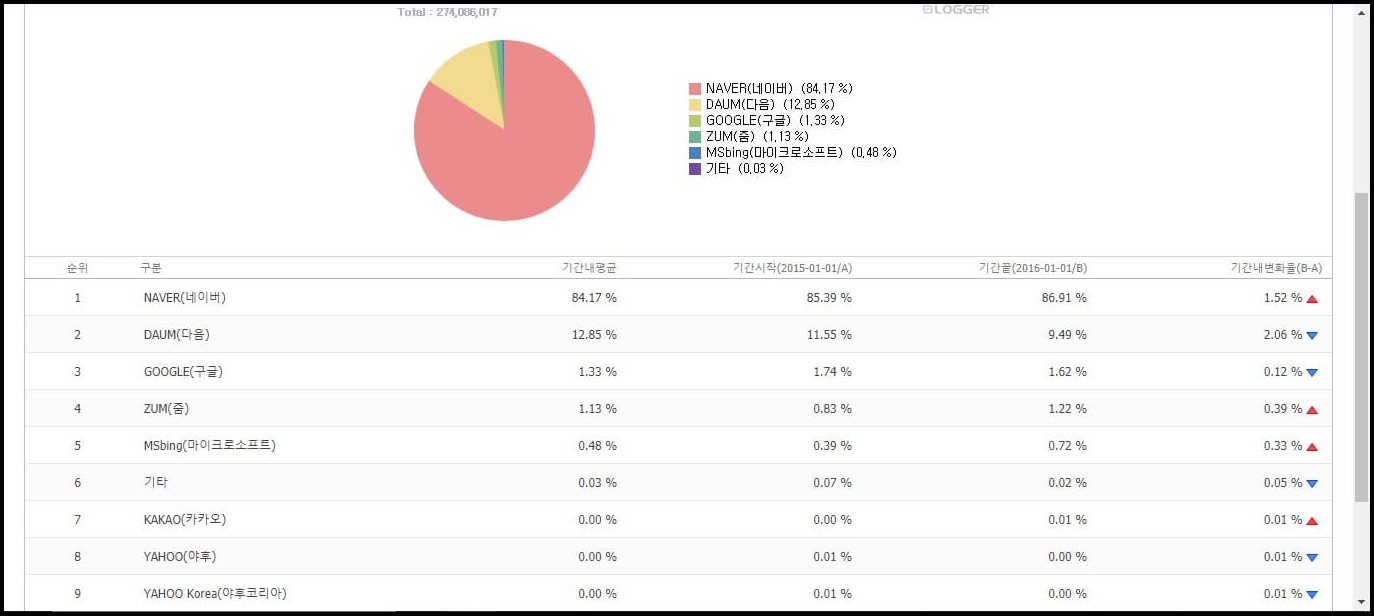 2015~2016년 검색엔진 시장 순위