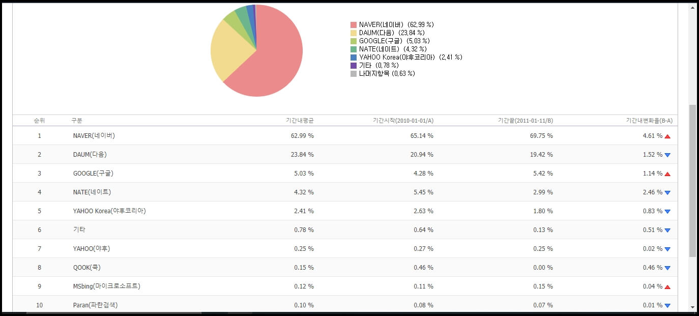 2010~2011년 검색엔진 시장 순위