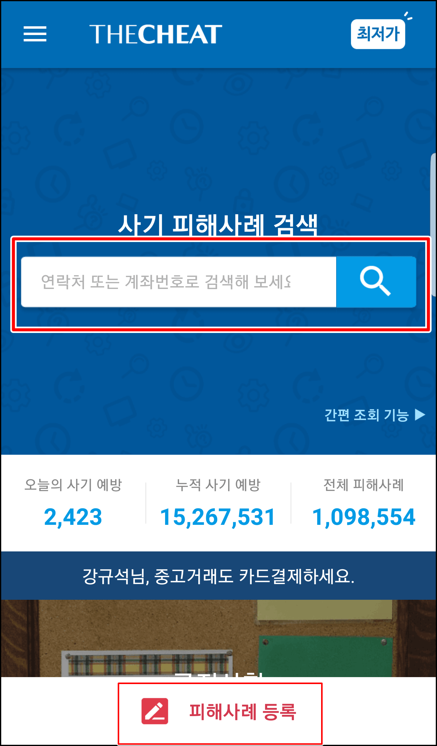 하단에 '피해사례 등록'을 클릭해보겠습니다.