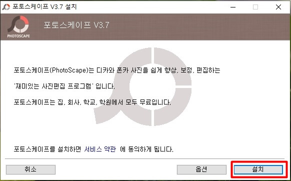 설치를 클릭합니다.