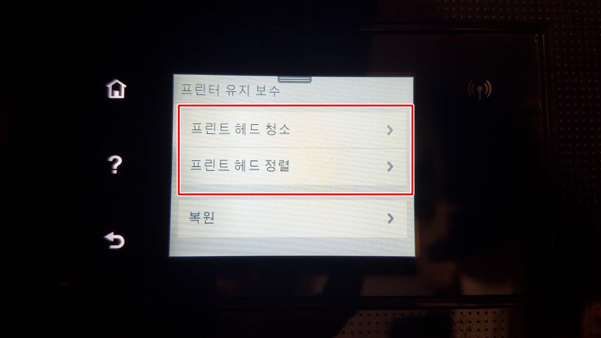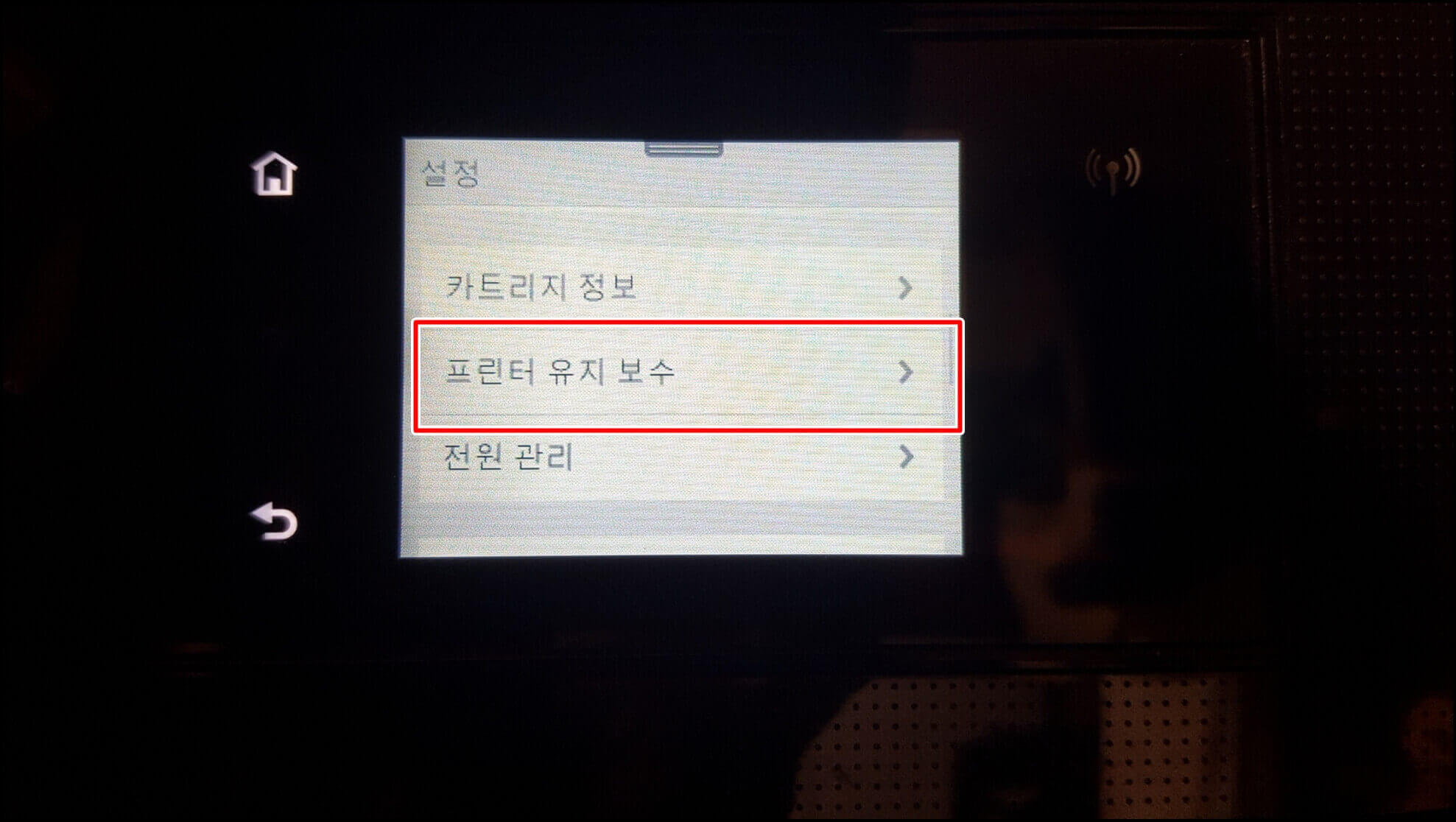 프린터 유지 보수가 보입니다. 바로 터치해봅니다.