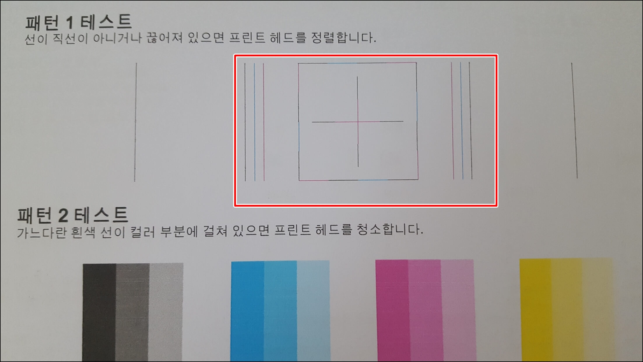 이번에는 헤드 정렬입니다. 헤드 정렬 역시 30초~1분 정도의 시간이 소요되며 A4용지 1장을 소모합니다.