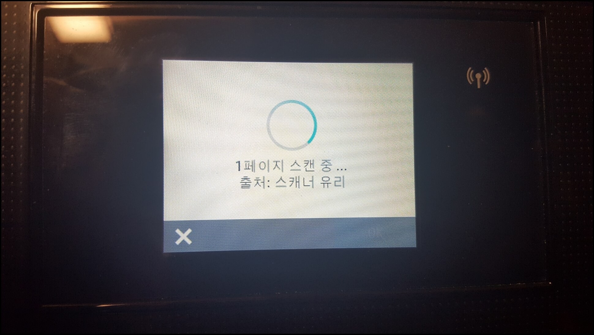 프린터기가 스캔을 하고 있습니다.