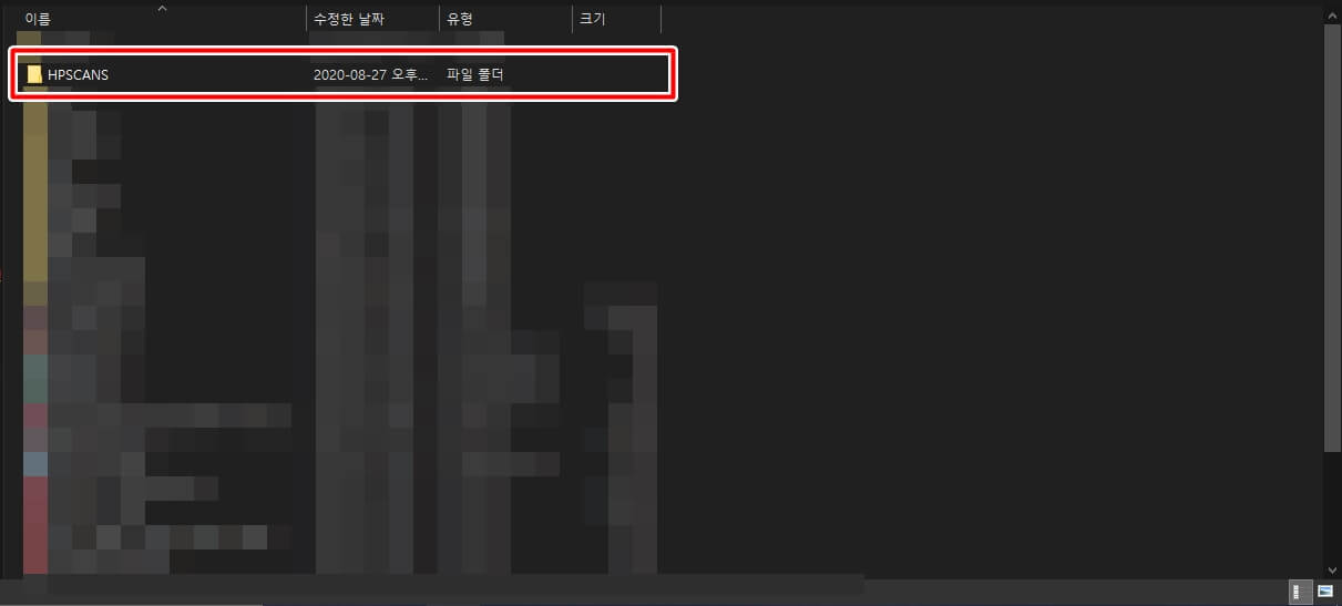 스캔이 모두 끝나고 컴퓨터 본체에 USB를 꽂아서 파일을 확인해 보면 HPSCANS라는 폴더가 자동으로 생성되며 폴더 안에 PDF 형식의 파일이 저장됩니다.