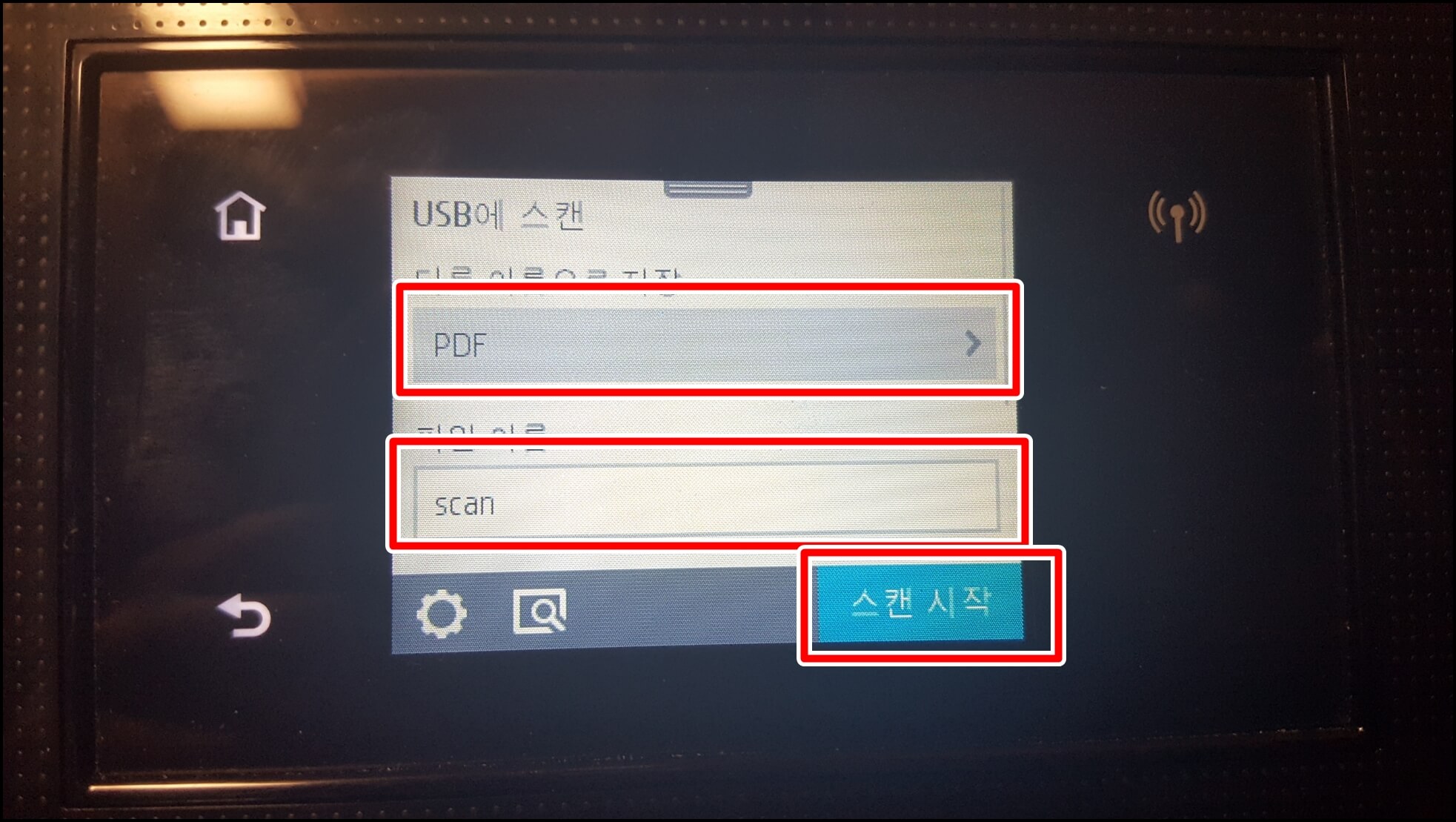 파일 형식은 PDF에서 다른 걸로 바꿔 줄 수 있는데 지금 포스팅을 쓰면서 처음 알았습니다. 그래도 파일 형식은 그대로 해서 계속 가보겠습니다. 스캔 시작을 눌러줍니다.