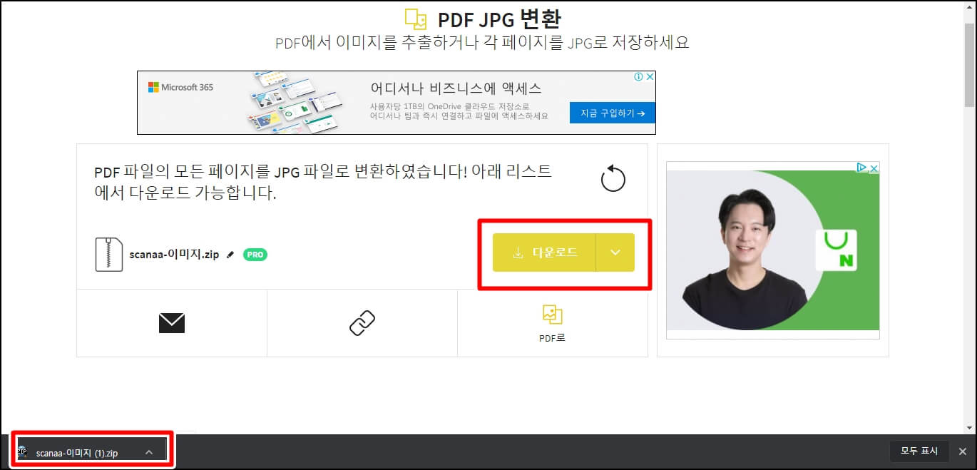 구글에서 PDF JPG 변환을 검색하시고 첫 번째 사이트를 클릭합니다.