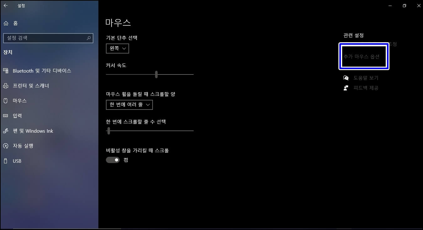 마우스 탭에서 추가 마우스 옵션을 클릭합니다.