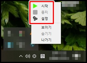 시스템 트레이 영역에서 백그라운드