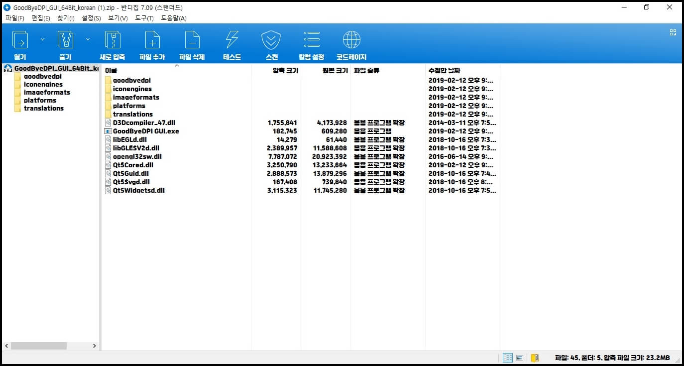 다운로드와 압축이 끝났습니다. 바로 goodbyeDPI GUI 아이콘을 클릭하여 프로그램을 실행시켜줍니다.