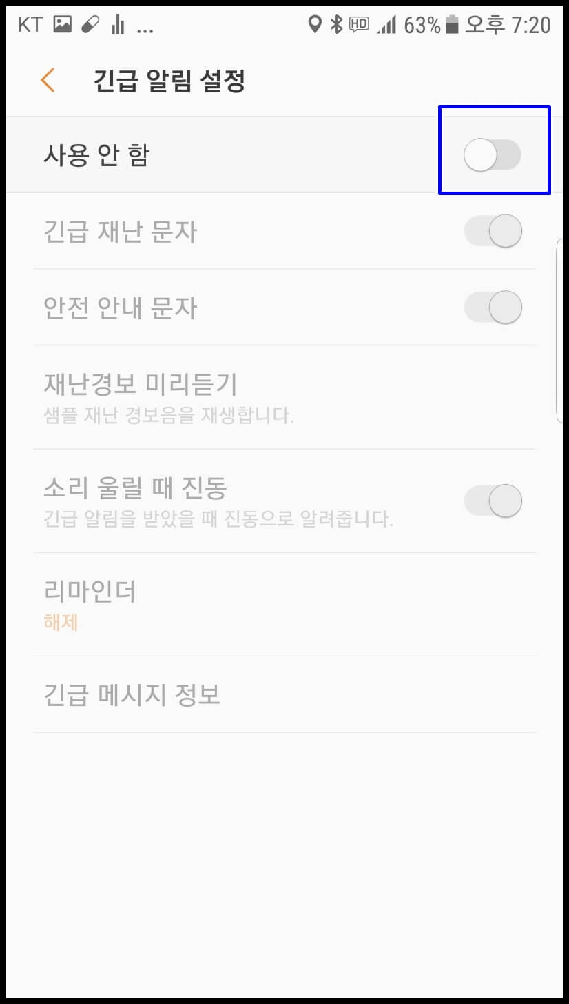 그럼 안전 안내 문자, 긴급 재난 문자 등 2가지 유형의 문자를 수신 및 차단하는 옵션이 나옵니다. 더 볼 것도 없이 2개 다 차단을 하시면 다시는 정부에서 보내는 문자를 받아볼 일이 없을 것입니다. 아이폰도 그렇고 전 스마트폰 기종이 이 방법에서 크게 벗어나지 않습니다. 인터페이스에 약간의 차이는 있을 수 있으나 이와 비슷한 방식으로 차단할 수 있으니 개념치 말고 차단해 보시길 바랍니다.