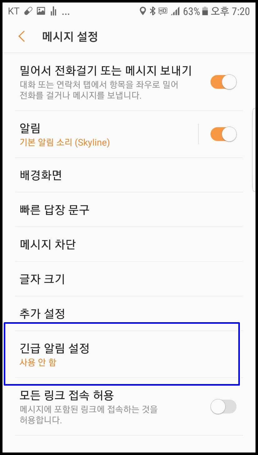 긴급 알림 설정을 눌러봅니다.