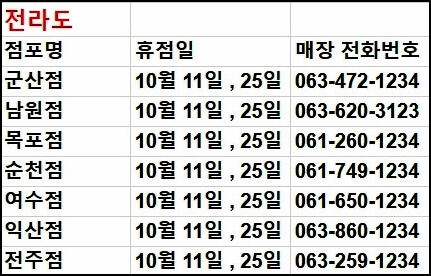 경산점 구미점 김천점 김해점 동구미점 마산점 사천점 상주점 안동점 양산점 영천점 진주점 창원점 통영점 포항이동점 포항점