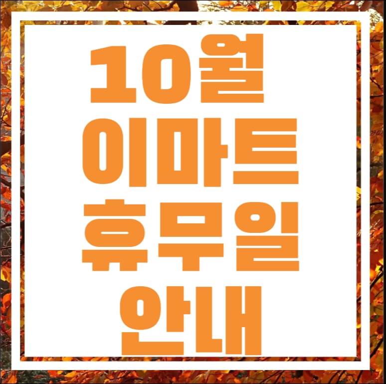 오고 가실 때 안전 운전하는 것 잊지 마시고 사랑하는 연인과 대형마트를 가신다면 손잡고 가는 것도 잊지 마시길 바랍니다!! 그럼 오늘 준비한 포스팅 내용인 10월 이마트 휴무일에 대해서 안내해 드리도록 하겠습니다.
