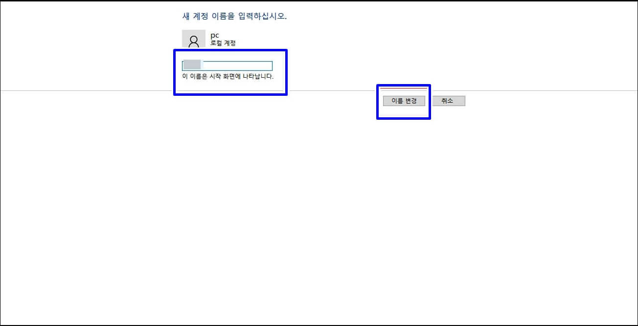 자신이 변경하고자 하는 이름을 입력하신 다음 이름 변경을 클릭합니다.