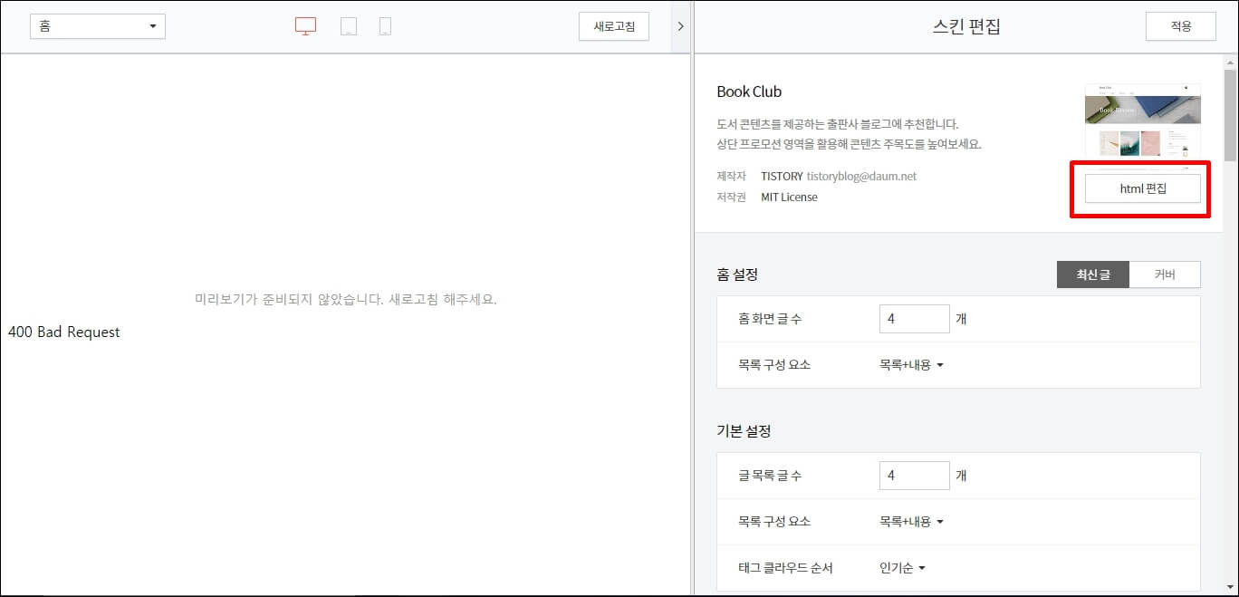 티스토리 블로그 북클럽 스킨 CSS로 글자 크기 바꾸는 방법
