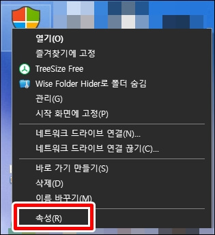 다음은 내 컴퓨터 아이콘에서 변경하는 방법입니다. 바탕화면에서 내 컴퓨터 아이콘을 우클릭하시고 속성 탭에 들어가 줍니다.