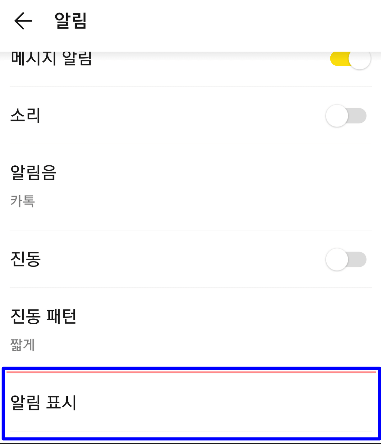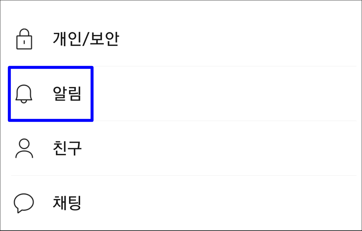 알림 표시를 눌러줍니다.