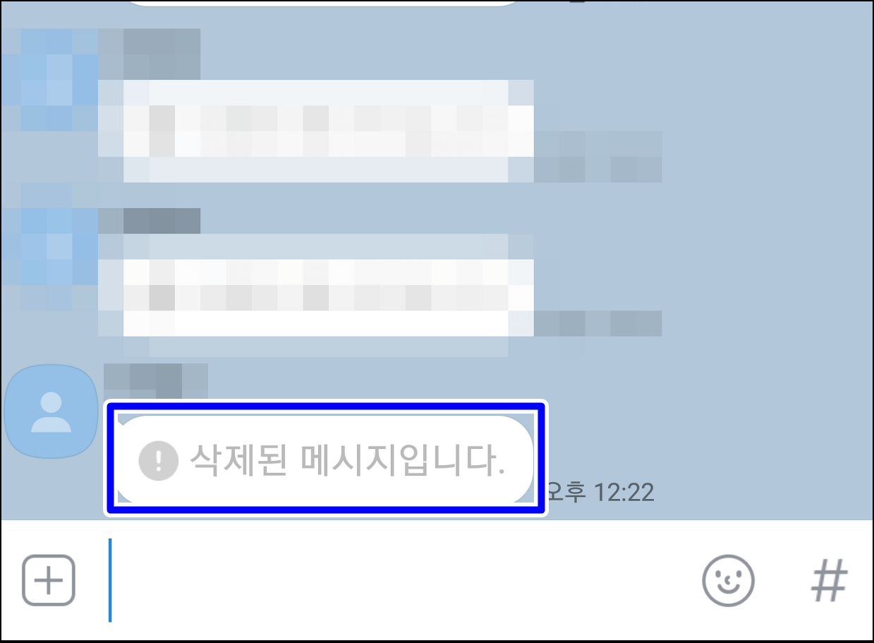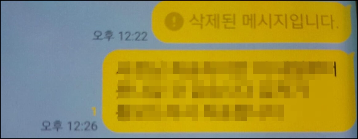 카톡 메시지를 보낸 후에 바로 삭제를 했더니 아래와 같이 삭제된 메시지라고 안내가 뜹니다.
