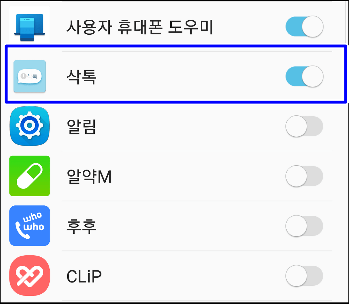 그러면 스마트폰에 설치된 삭톡이 나오고